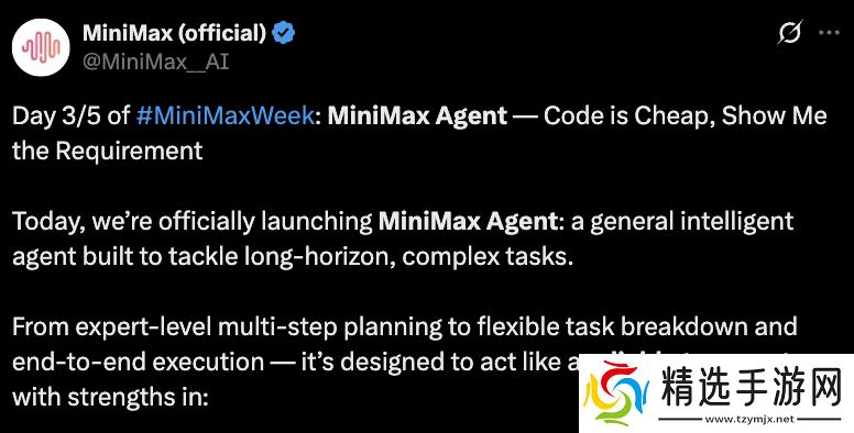 近日,MiniMax公司终于推出了其备受期待的第三次重大更新——一款专为解决长期复杂任务设计的通用智能Agent,即MiniMax Agent。这款产品的问世,标志着MiniMax在人工智能领域迈出了重要一步。