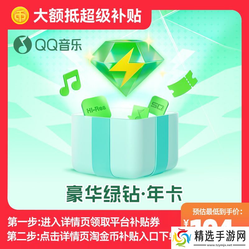 天猫QQ 音乐绿钻年卡领 10 元券 + 淘金币减 8.61 元淘金币抵扣后 104.4 元直达链接