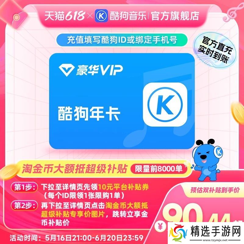 天猫酷狗音乐豪华会员 年卡领 10 元补贴券 + 淘金币减 7.56 元淘金币抵扣后 90.5 元直达链接