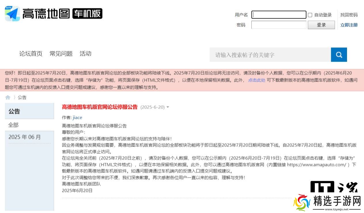 本站 6 月 20 日消息,高德地图车机版官网论坛今日发布停服公告:
