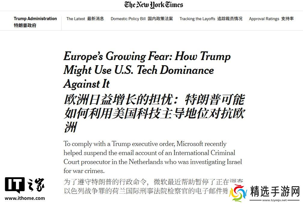 本站 6 月 22 日消息,据《纽约时报》最新报道,欧洲各国**可能正在重新审视其对美国技术与服务的依赖程度。