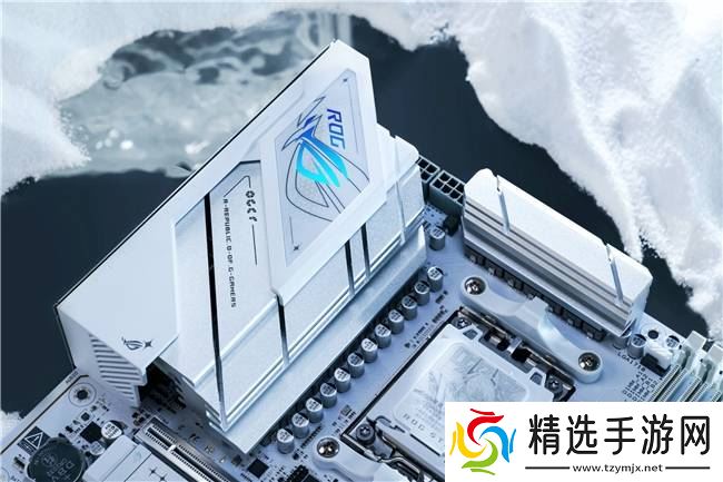 ROG B850小吹雪主板在设计上大胆创新,突破传统电竞美学。超大面积的银白色散热装甲,浅色PCB以及内存插槽,都融入了雪武战姬的形象,使得整体风格次元感十足。I/O装甲上的ROG LOGO支持神光同步,进一步提升了主板的颜值,树立了新的次元美学标杆。