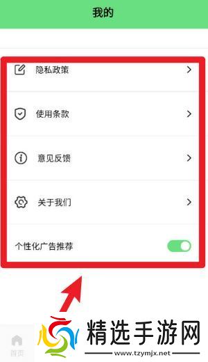 1、点击“我的”页面,可以查看隐私政策、使用条款和意见反馈,还能开启或关闭个性化广告。