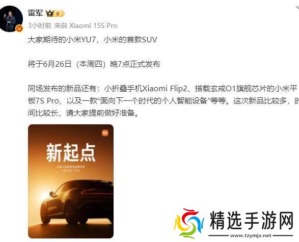 雷军近日在个人社交平台上预告,小米将于6月26日举办一场盛大的全生态发布会,届时将有一系列新品亮相。这场发布会不仅涵盖了小米YU7、小折叠手机Xiaomi Flip2以及搭载玄戒O1旗舰芯片的小米平板7S Pro,更有一款神秘新品——被雷军称为“面向下一个时代的个人智能设备”,引起了广泛关注。