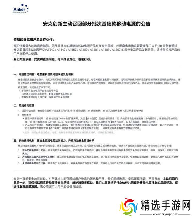 罗马仕并非孤例。6月13日,安克创新(Anker)同样因锂离子电池过热风险,在美国市场召回了115万台充电宝。一周后,安克又因电芯来料品质问题,在中国市场召回了超过71万件充电宝。据安克公告,问题源于某供应商部分批次电芯存在未经批准的原材料变更,可能导致极少数产品在多次循环使用后出现过热隐患。