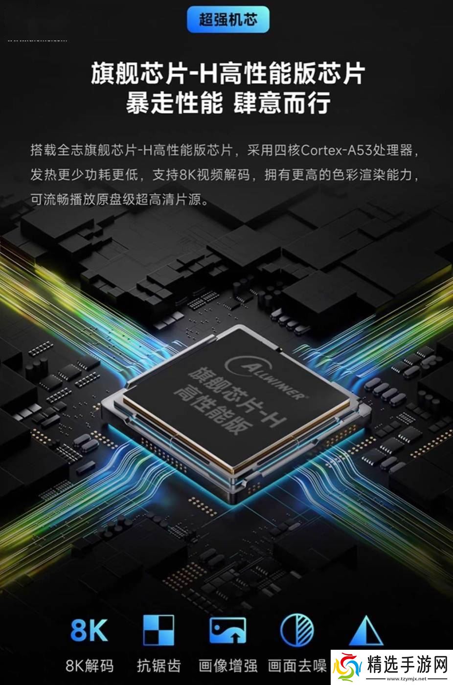 硬件配置方面,天猫魔盒8升级版采用了“全志-H芯片”,搭载了4GB LPDDR4 RAM和32GB存储空间,为用户提供了充足的资源来处理各种应用和任务。该盒子还支持8K解码、HDR、抗锯齿、画像增强、画面去噪以及智能优化等多项技术,旨在为用户提供卓越的视听体验。