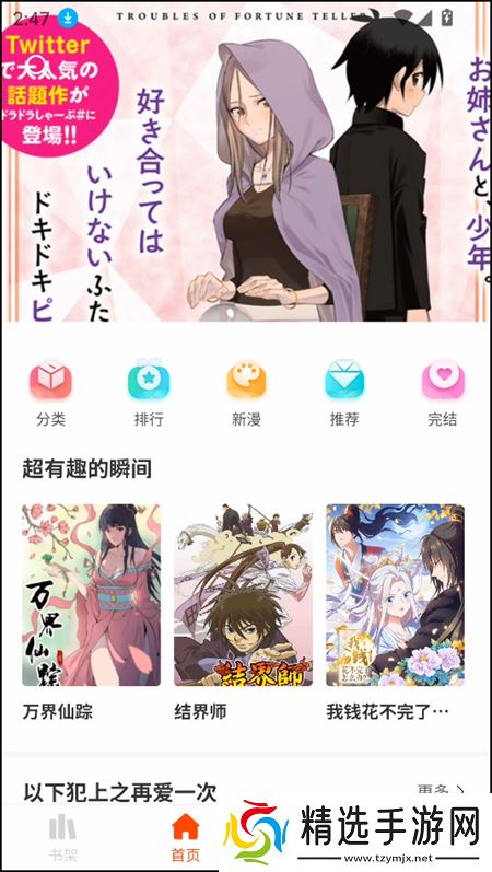 2、在首页界面下,我们不仅能够看到各种热门推荐漫画作品而且更是可以体验到分类、排行、新漫、推荐等一系列板块所带来的便利性。