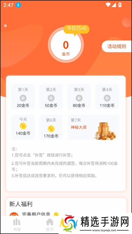 3、在福利界面下,我们可以进行签到操作,能够获得金币奖励。