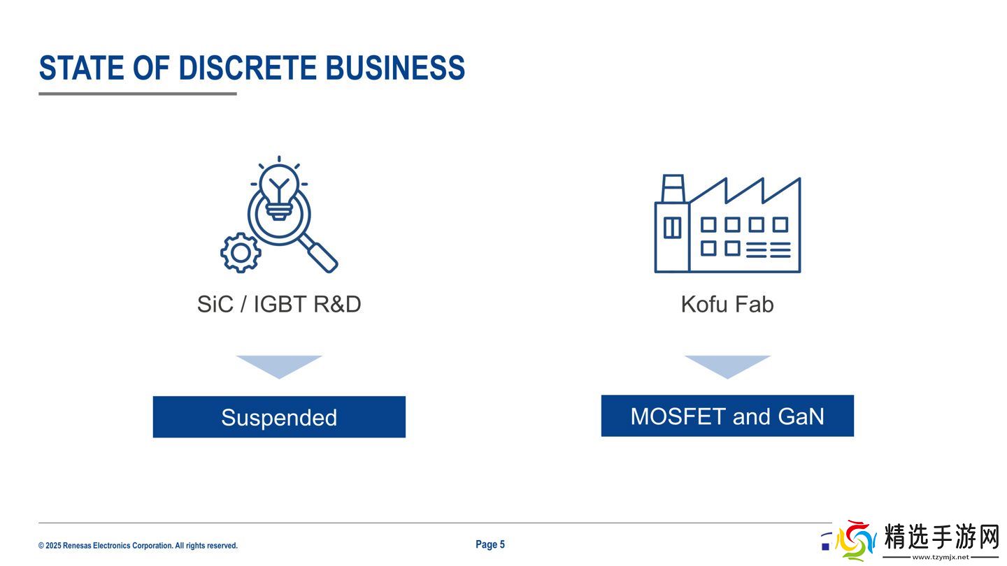 关于碳化硅企业 Wolfspeed 的破产重组,瑞萨将在 2025 年二季度的财报中计提 2500 亿日元(现汇率约合 123.88 亿元人民币)的损失;同时受此影响,瑞萨将暂停碳化硅和 IGBT 的研发,甲府工厂将专注于 MOSFET 和氮化镓产品。