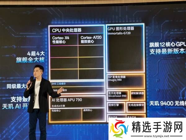 在沟通会上,联发科也正式发布了天玑9400e处理器。这款处理器基于台积电4nm工艺制程打造,由4颗超大核和4颗大核组成,其中超大核为Cortex-X4,大核为Cortex-A720。经过专业测试,天玑9400e在Aztec 1440p测试中的成绩达到了约95fps,综合实力超越了骁龙8s Gen4。