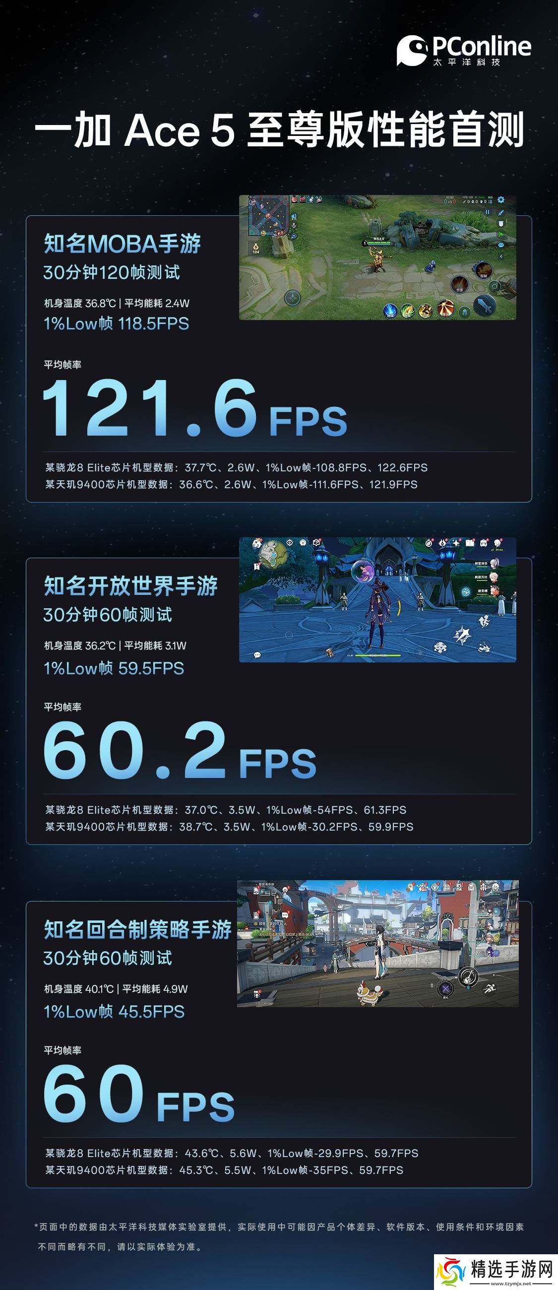 在测试中,我们精心挑选了三款热门手游作为测试对象,确保覆盖不同类型的游戏场景。一加 Ace 5至尊版的系统版本已升级至PKX110_15.0.2.88(CN01),测试在性能模式下进行,所有后台应用均已清空,设备通过WiFi连接至网络。每款游戏测试时长为30分钟,期间我们对帧率、功耗以及发热情况进行了实时监测,测试结果如下。