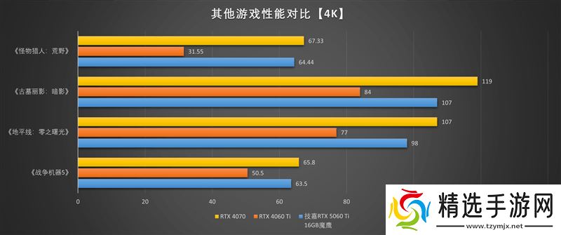除了新游戏,技嘉RTX 5060 Ti 16GB魔鹰显卡在应对老游戏时也游刃有余。在《怪物猎人:荒野》、《战争机器5》、《地平线:零之曙光》等游戏中,即使在4K分辨率和极高画质下,也能轻松达到60FPS以上的流畅帧率。