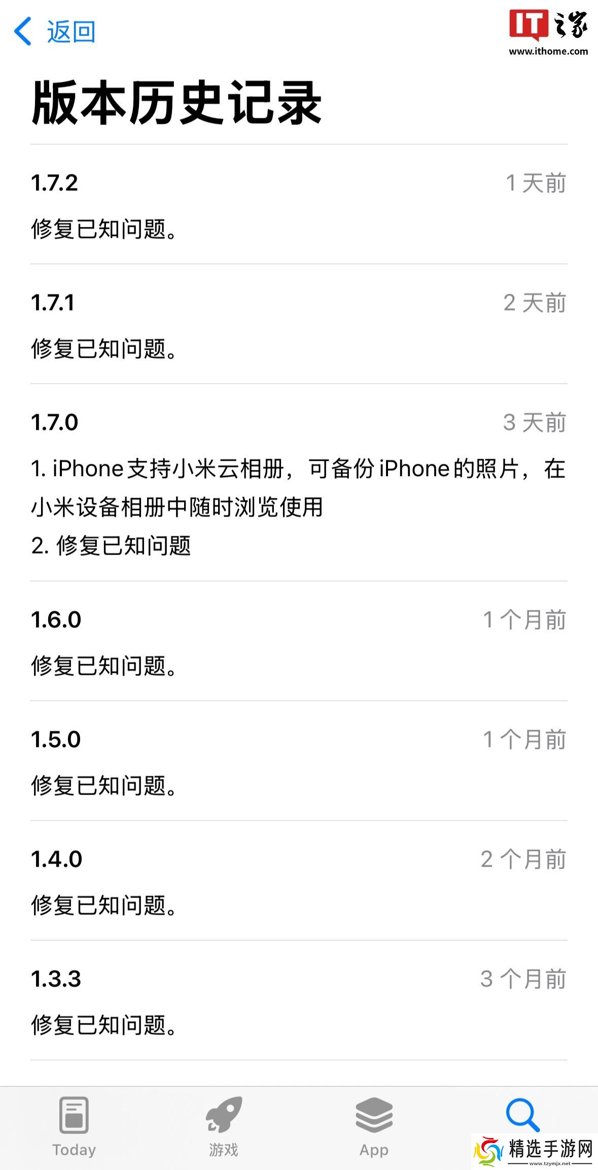 本站注意到,小米互联服务 App 的版本历史记录显示,其在 3 天前更新 1.7.0 版本(当前版本 1.7.2),新增 iPhone 支持小米云相册功能,该功能不仅可备份 iPhone 照片,还允许小米设备浏览使用。