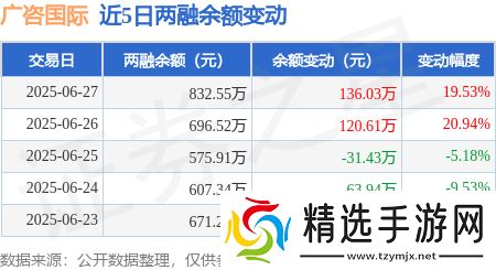 在资本市场动态中,广咨国际(股票代码:836892)于6月27日展现了活跃的融资交易情况。据数据显示,该公司当日融资买入金额达到292.43万元,而融资偿还额为156.41万元,这直接推动了融资净买入额攀升至136.03万元。融资余额也随之增长至832.55万元,值得注意的是,在过去20个交易日里,有11个交易日均出现了融资净买入的现象。