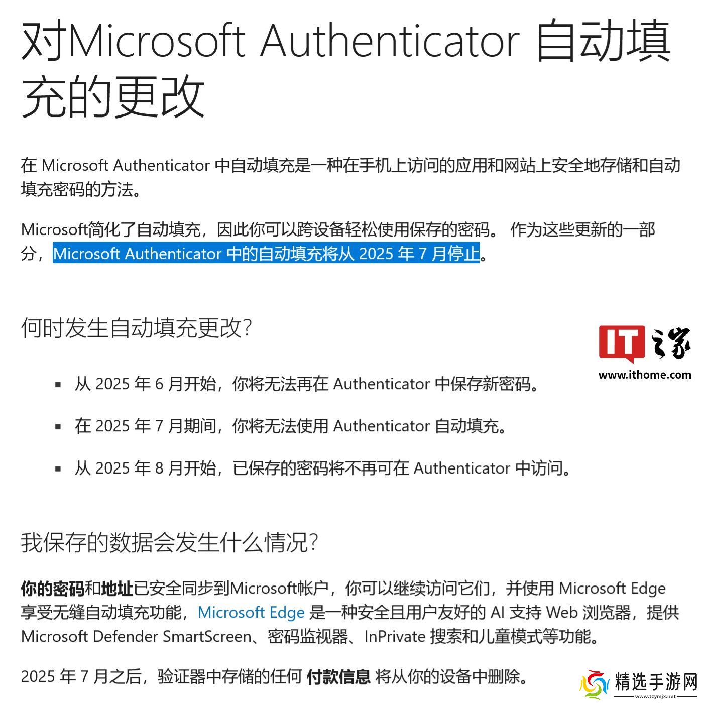 2025 年 7 月期间,将无法使用 Authenticator 自动填充;
