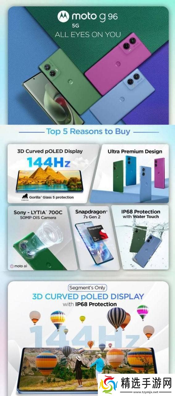 本站 7 月 1 日消息,消息源 @stufflistings 昨日(6 月 30 日)在 X 平台发布推文,曝料称摩托罗拉将于 7 月 9 日发布 Moto G96 5G 手机,配备 144Hz 曲面 pOLED 屏幕,IP68 级别防水等等。