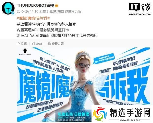 雷神科技近日宣布,其最新研发的AURA AI智能拍摄眼镜即将于5月30日正式开放预约。这款眼镜内置了高通AR1芯片,预示着其强大的计算与处理能力。