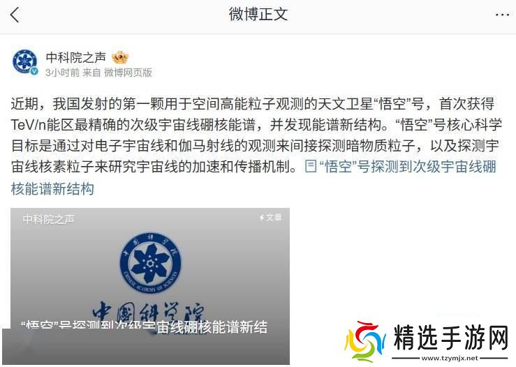 近日,中国科学院在其官方社交媒体平台上宣布了一项令人瞩目的科学成就。我国首颗空间天文卫星“悟空”号,在对空间高能粒子的持续观测中,首次成功获取了TeV/n能区次级宇宙线硼核能谱的最精确数据,并揭示了能谱的全新结构特征。