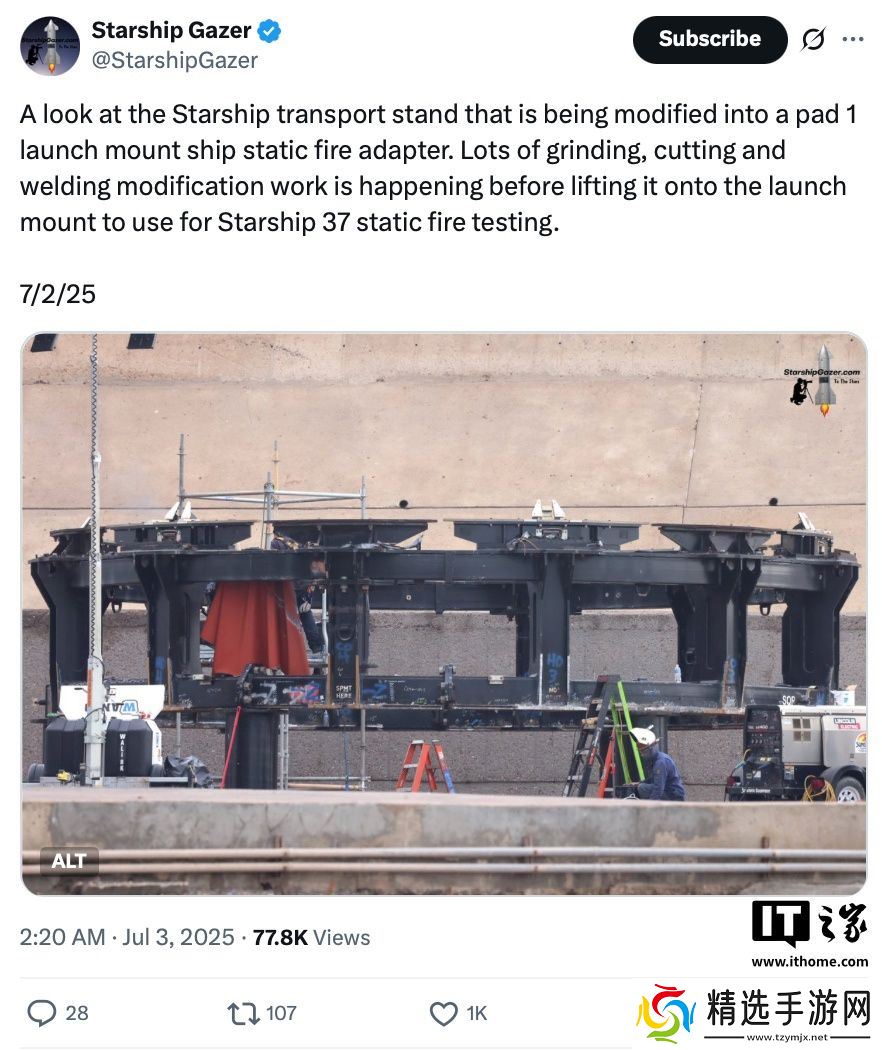 本站 7 月 4 日消息,SpaceX 在上月对旗下 Starship(星舰)36 号火箭进行静态点火测试时发生爆炸事故,摧毁了公司原有的地面测试平台。不过如今专门关注 SpaceX 动向的博主 StarshipGazer 用户在X平台发文,透露 SpaceX 已悄悄开始相应测试平台重建工作。
