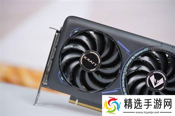 铭瑄RTX 5070 iCraft OC 12G在设计上采用了全新的Flow Design理念,整体呈现出一种未来感十足的风格。显卡正面的四角设计得圆润流畅,而在中央风扇周围,一个碳纤维质感的圆环尤为引人注目,圆环上刻有“铭瑄第四代电竞之心设计”的英文标识,彰显着它的独特身份。