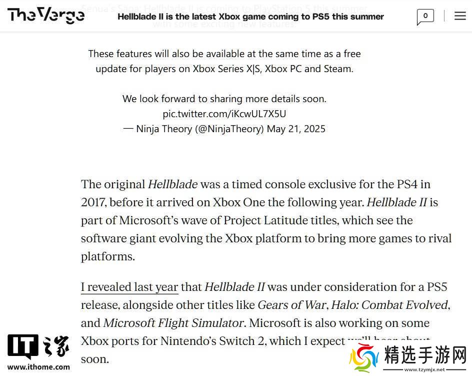 据知名科技媒体The Verge的资深记者Tom Warren透露,微软在宣布《地狱之刃 II:塞娜的传说增强版》将登陆PlayStation 5的同时,也在秘密筹备将部分Xbox游戏移植至任天堂Switch 2平台。他预计,这一消息将在不久的将来正式公布,为玩家们带来惊喜。