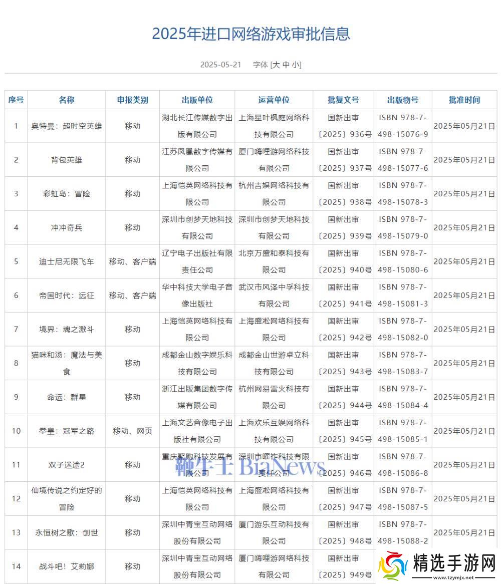 2025年度进口网络游戏审批动态揭晓,国家新闻出版署最新公告显示,5月份共有14款海外游戏成功通过审批。据统计,截至目前,今年已累计有44款进口网络游戏获得正式批准。