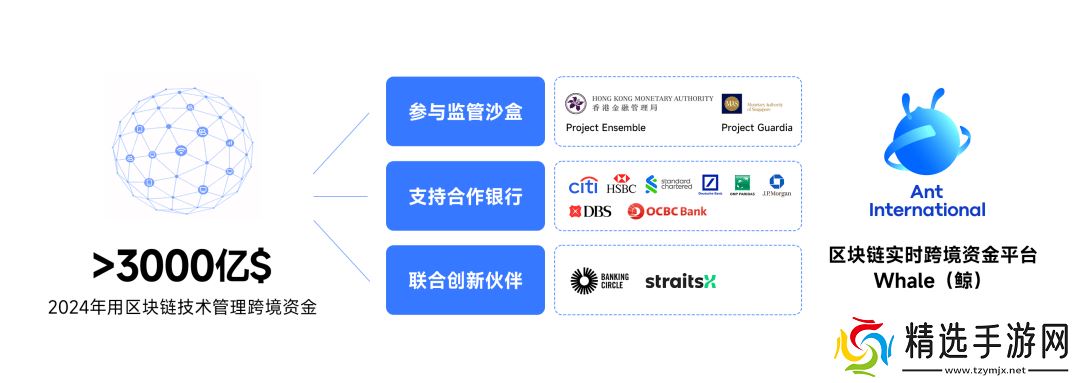 蚂蚁国际推出的Whale平台是一个实时多币种清结算全球财资管理平台,利用区块链、加密技术和AI能力,实现了全天候即时外汇结算,将原本需要1至3天的结算周期缩短至分钟级甚至秒级。2024年,蚂蚁国际通过Whale平台处理了超过1万亿美元的交易,覆盖了全球70多个市场的线下数字支付、200个市场的线上电商支付以及120万个全球中小企业的全球账户运营。其中,超过三分之一的交易是通过Whale平台完成的。花旗银行、汇丰银行、渣打银行、德意志银行和法国巴黎银行等全球主流银行已与蚂蚁国际合作,在Whale平台上推出了通证化存款服务。