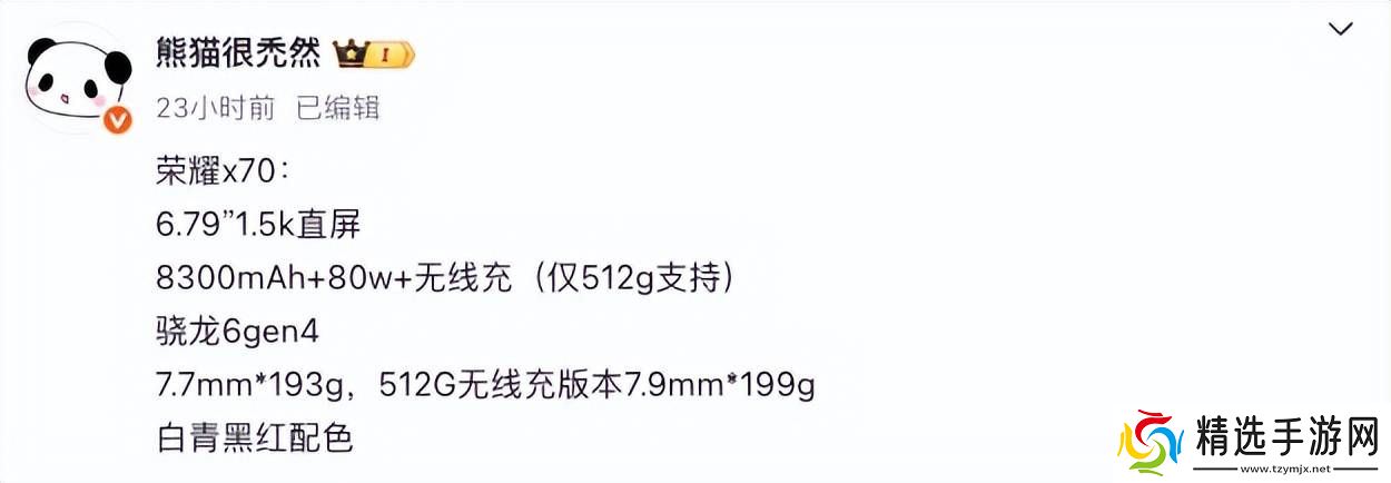 爆料还指出荣耀X70高配版(512GB)或将支持80W无线充电功能,这一配置在千元机型中实属罕见,进一步提升了该机的竞争力。