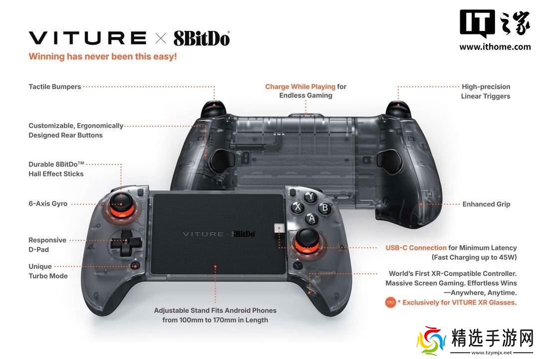 总的来说,VITURE x 8BitDo 猎户座可拉伸游戏手柄的发布,无疑为游戏玩家和XR眼镜用户带来了一款全新的、高性能的游戏手柄。它的出现,不仅满足了玩家对于低延迟、高精准度的需求,还为XR眼镜用户提供了更加便捷、高效的连接方式。相信在未来,这款手柄将成为游戏市场和XR领域的又一热门产品。