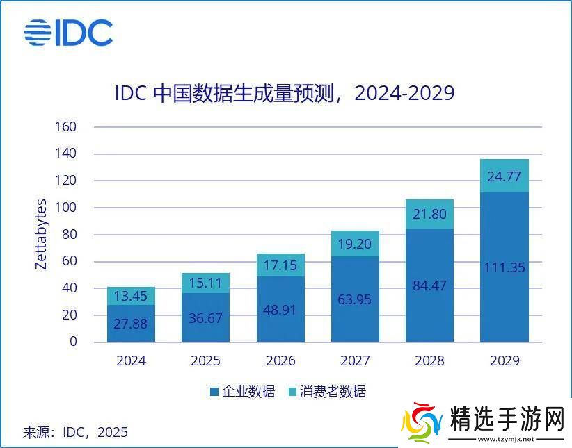 值得注意的是,中国在全球数据增长中占据了重要地位。据IDC预测,到2025年,中国市场将产生51.78ZB的数据,这一数字在2029年将进一步增长至136.12ZB,复合年增长率高达26.9%。这一增速不仅远高于全球平均水平,也显示出中国在全球数据市场中的强劲实力和巨大潜力。