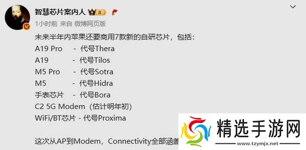 近期,业界传闻苹果公司正紧锣密鼓地准备在未来六个月内推出七款自主研发的全新芯片,覆盖A系列、M系列以及关键的通信组件。据TrendForce的最新研究报告及行业内开发者对代码的深入分析,苹果正在并行开发以下芯片: