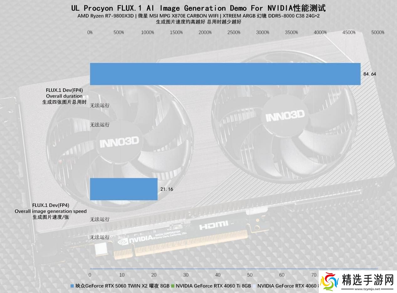 在AI性能测试中,映众RTX5060曜夜凭借对FP4精度模型加速处理的支持,在文生图和本地大语言模型部署等测试中表现出色。相比前代显卡,其在生成速度和显存占用方面均有显著提升。