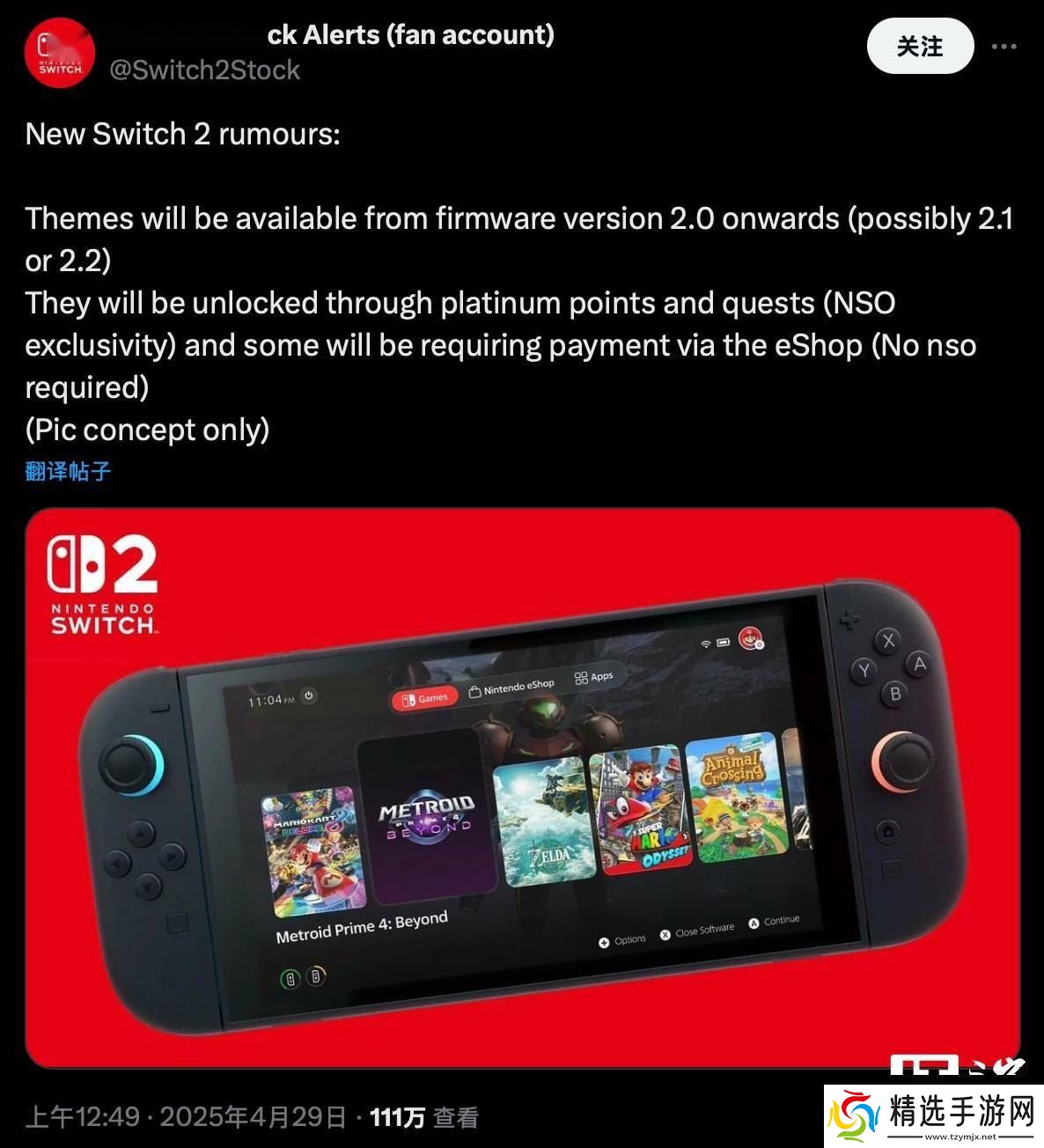 据爆料,Switch 2的当前固件版本尚未包含所有即将推出的功能。一个名为X平台Switch 2 Stock alerts的粉丝账号在上月底透露,从2.0固件版本(或可能是2.1、2.2版本)开始,Switch 2将引入更多主题选项。这些主题可能不会免费提供,玩家可能需要成为任天堂Switch Online会员,使用白金点数兑换,或者通过eShop直接购买。