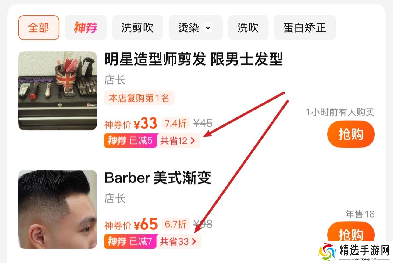 天猫美团神券包 省钱包 30/60/90/100/600/1320 元 2.9 元起直达链接例如购买神券后,大部分理发团购还能再减 5 元(当然还是建议先与抖音团购对比价格后,再下单哦):