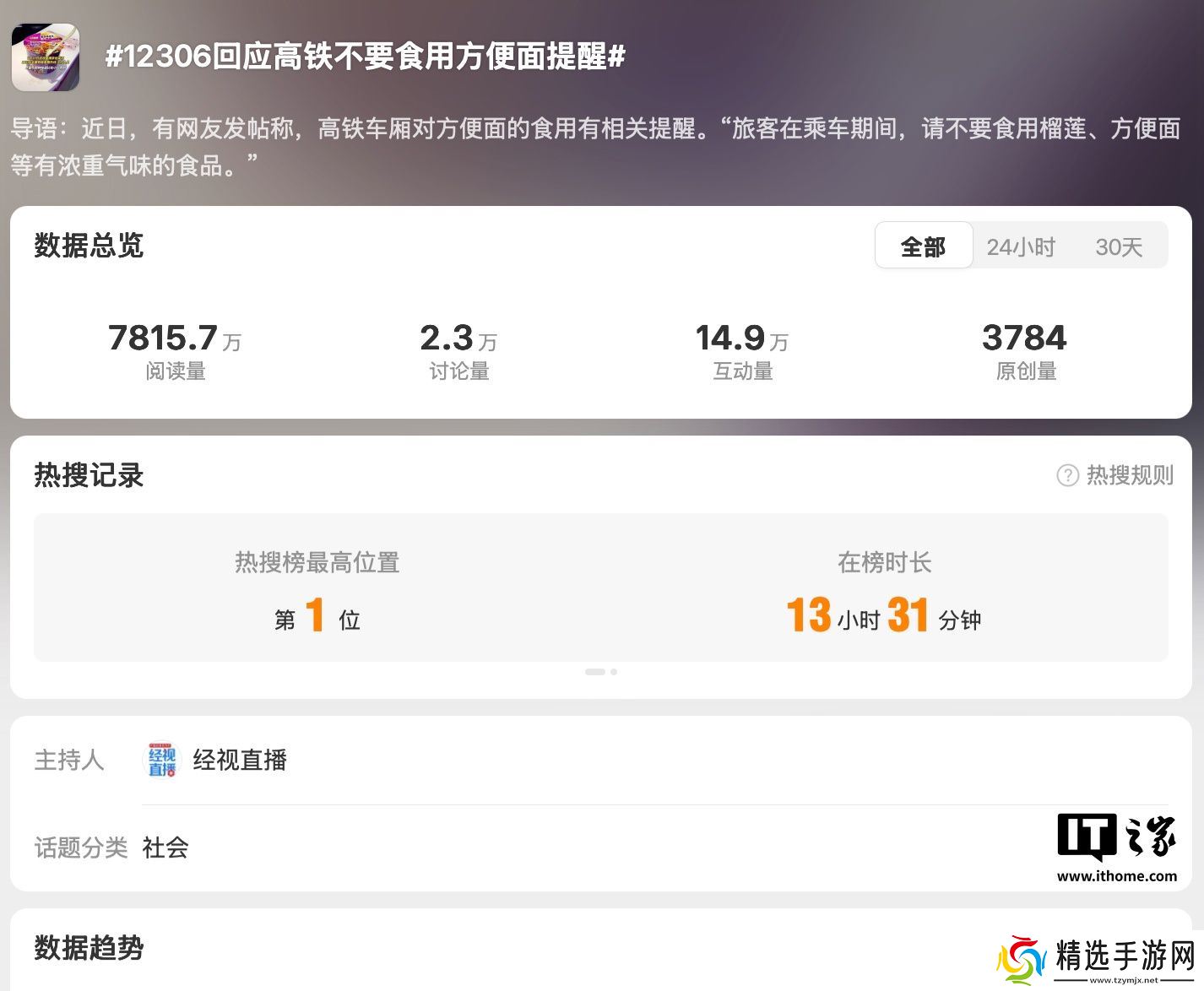 本站 7 月 20 日消息,近日网传“高铁不让吃方便面”,相应热搜在微博等平台引发网友热议。
