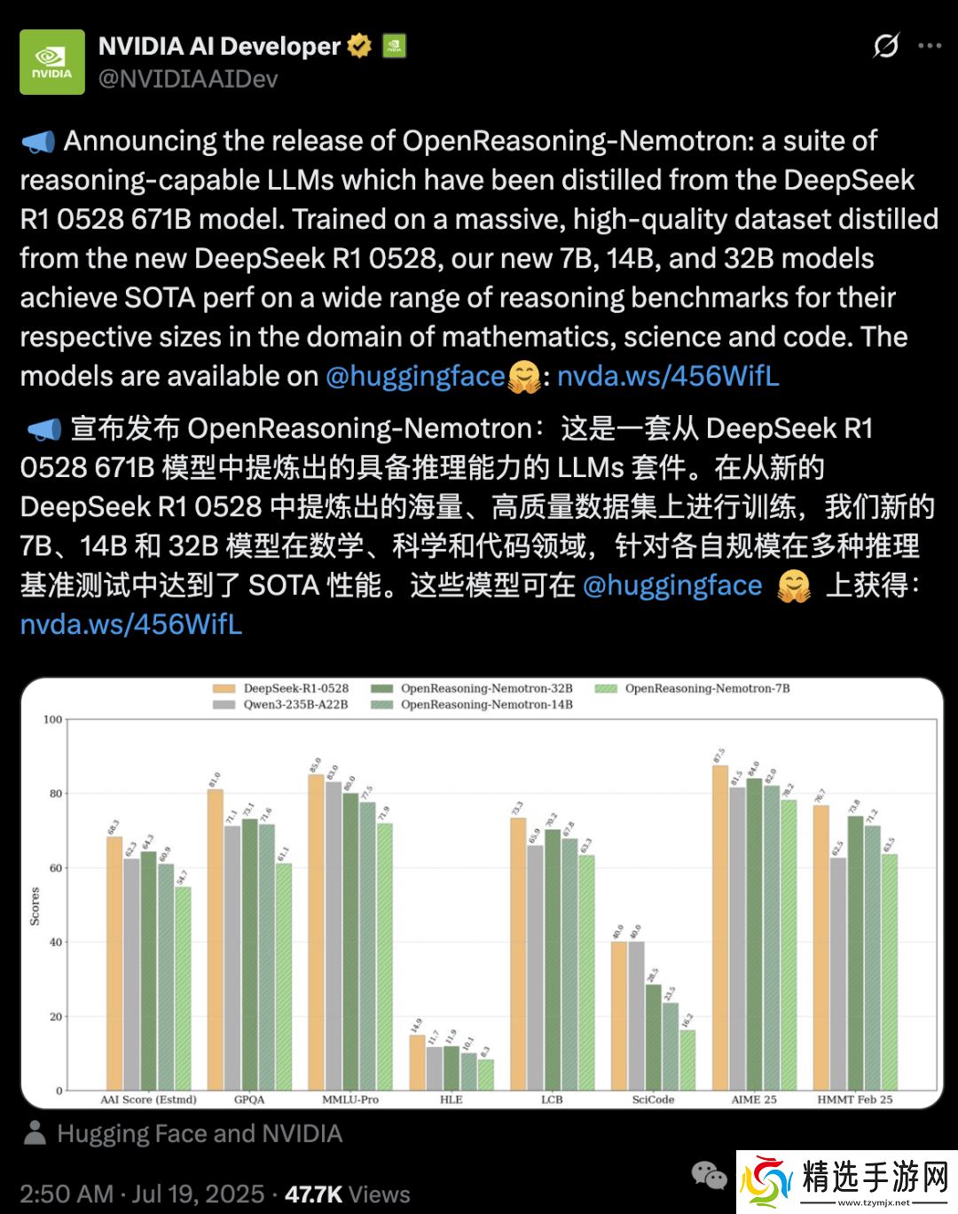 英伟达近日宣布推出OpenReasoning-Nemotron模型,这一创新成果基于Qwen2.5架构,并利用DeepSeek-R1-0528生成的数据进行训练,展示了在数学、科学和代码任务上的卓越推理能力。
