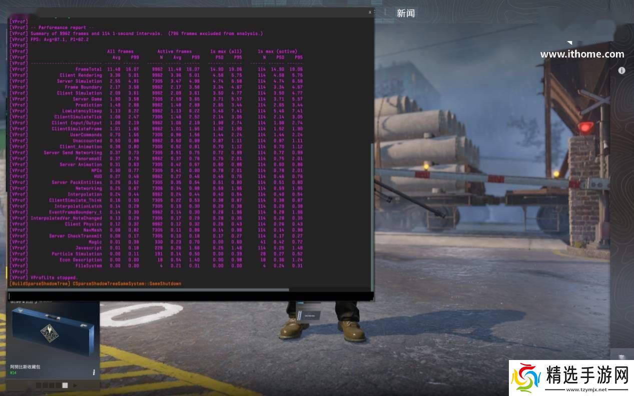 在办公与游戏体验方面,雷神AIBook 14 Air同样表现出色。PCMark 10的现代办公测试显示,其总分达到了6471分,其中常用基本功能分数接近1万分,说明它更适合Office、视频会议、网页浏览等轻度办公场景。而在游戏方面,虽然受单通道内存限制,但在《CS2》游戏中,将分辨率设置为1200P并将画质设定为“低画质”后,实测游戏运行的平均帧率为87fps,游玩过程依然流畅。