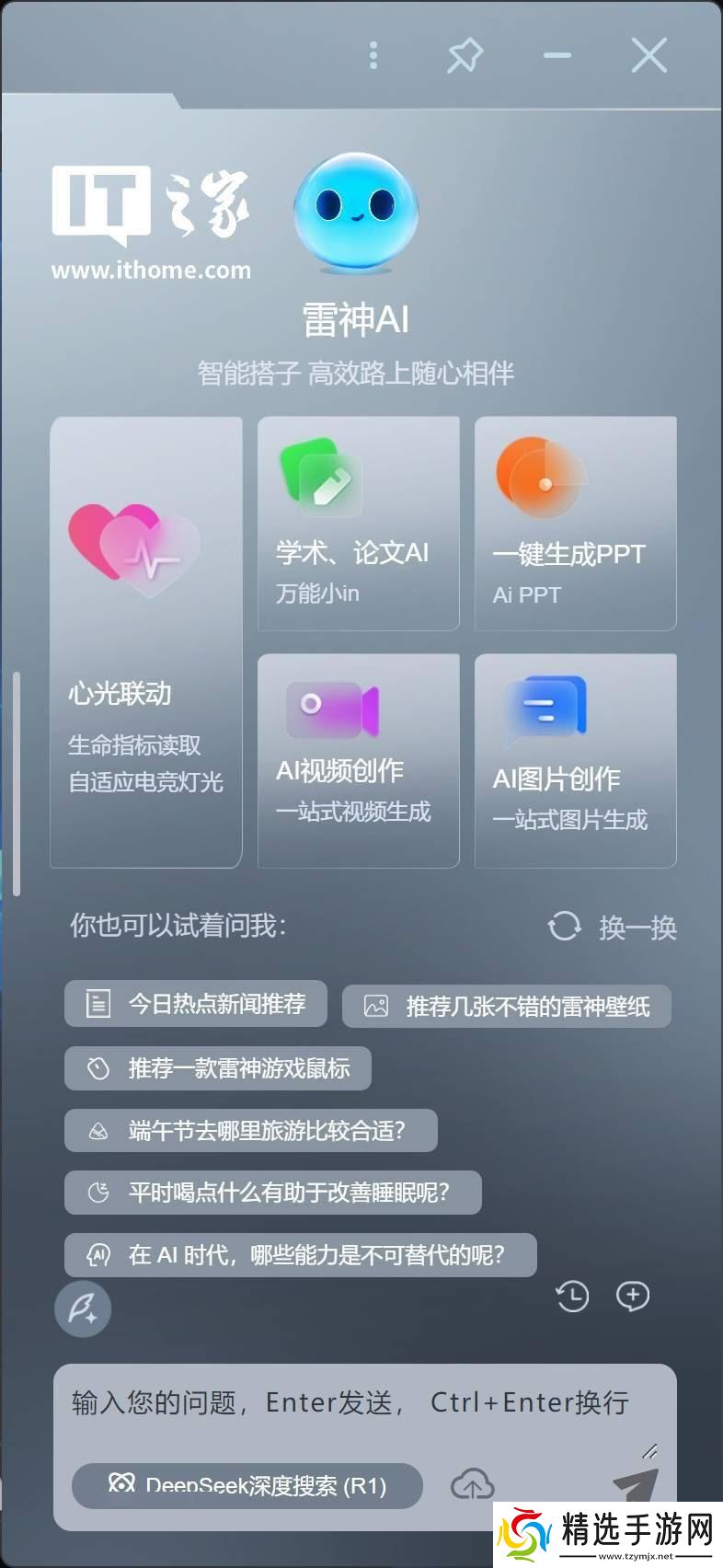 雷神AIBook 14 Air还内置了丰富的AI功能。其中,雷神AI整合了DeepSeek R1、文生图、文生视频、一键生成PPT等众多功能,为用户提供了极大的便利。例如,DeepSeek R1可以快速搜索并整理相关信息;一键生成PPT功能则可以根据提示词、本地大纲、其他PPT或网页链接等方式智能生成PPT大纲和模板,大大简化了办公流程。