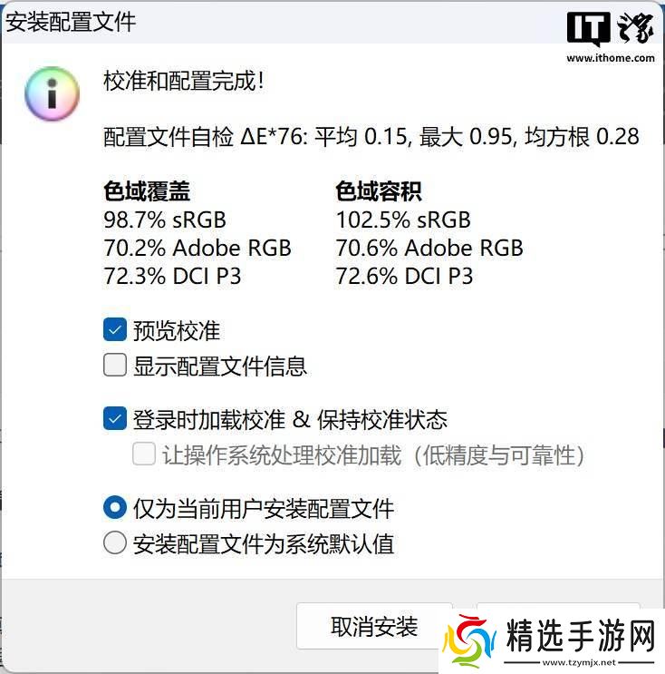 在屏幕素质方面,这款笔记本同样表现出色。实测显示,它能够覆盖98.7%的sRGB色域,全屏最高亮度达到414nits。更令人惊喜的是,其色准表现也非常优秀,平均ΔE仅为0.24,最大ΔE也不到1,完全可以满足轻度视频剪辑和专业设计需求。
