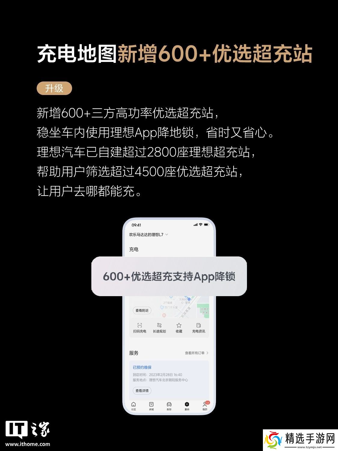 新增 600 + 三方高功率优选超充站,稳坐车内使用理想 App 降地锁,省时又省心。理想汽车已自建超过 2800 座理想超充站,帮助用户筛选超过 4500 座优选超充站,让用户去哪都能充。