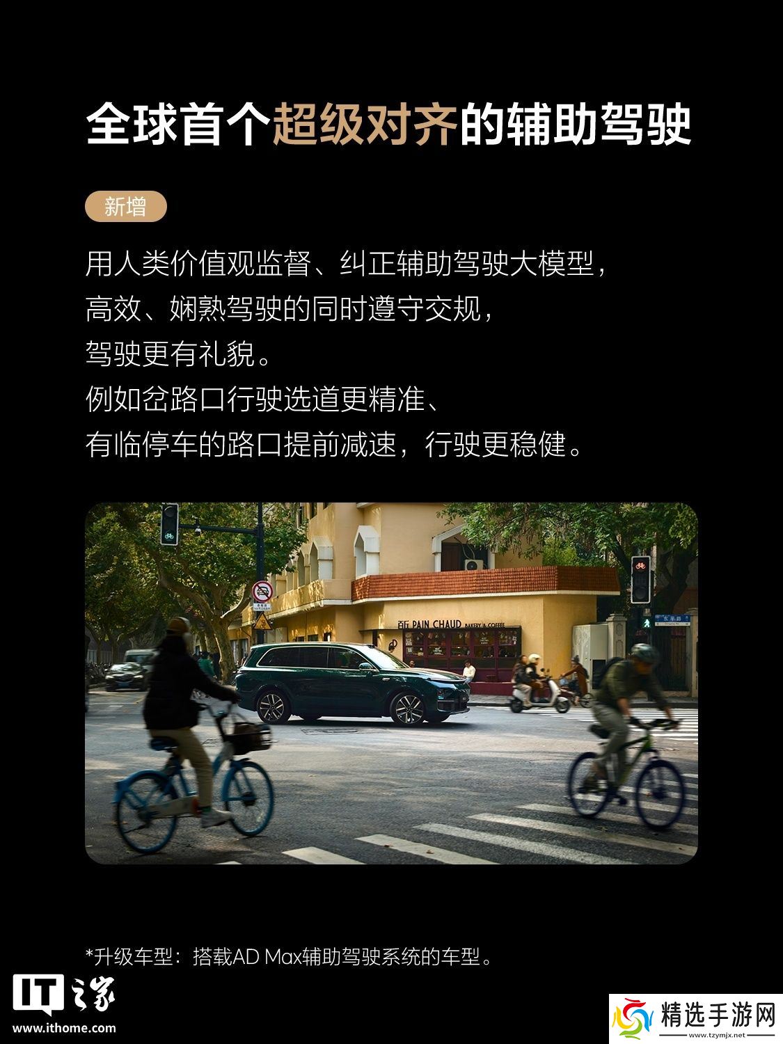 理想汽车 OTA 7.5 新增了全球首个超级对齐的辅助驾驶功能,该功能通过人类价值观监督和纠正辅助驾驶大模型,实现高效、娴熟驾驶的同时遵守交通规则,使驾驶更有礼貌。例如,在岔路口行驶选道更精准,有临停车的路口提前减速,行驶更稳健。该功能适用于搭载 AD Max 辅助驾驶系统的车型。
