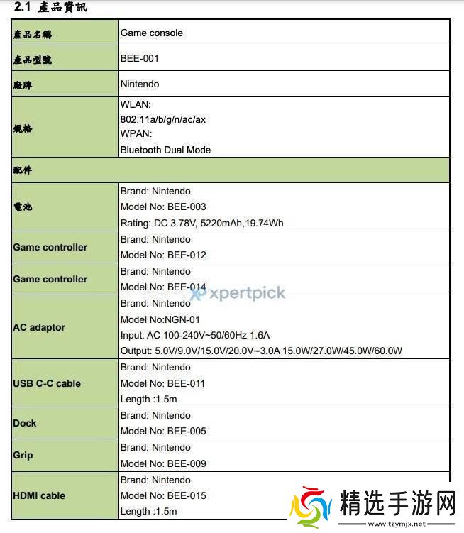 任天堂新款游戏掌机Switch 2近日在NCC认证网站上曝光,引发了广泛关注。据悉,这款全新游戏掌机的型号为BEE-001,其额定电池容量达到了5220mAh,并支持36W的快速充电。