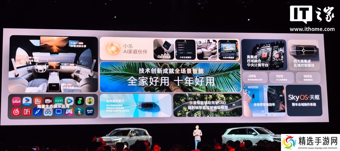 乐道 L90 车内配有 35 英寸 AR-HUD+17.2 英寸 3K 中控屏 + 17.3 英寸 3K 吸顶屏 + 8 英寸后排屏,车机芯片为高通骁龙 8295P,具备 60TOPS AI 算力。新车基于 900V 纯电架构打造,提供两驱、四驱两种动力,后桥电机为蔚来 ET9 同款,最大功率 340kW,四驱版车型则是 440kW。新车标配 85kWh 电池组,后驱、四驱车型 CLTC 续航分别为 605km、570km。