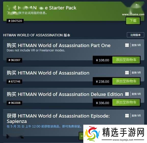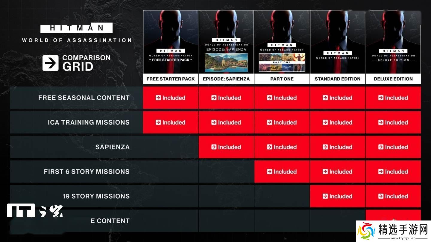 为了让玩家更清晰地了解各个版本之间的差异,官方还特别提供了版本对比图。从图中可以看出,限时免费版本虽然不包含全部内容,但已经足够让玩家初步领略到《杀手》系列的魅力。对于那些想要深入体验游戏的玩家来说,他们可以选择购买更高级的版本,以获得更多的游戏内容和DLC。