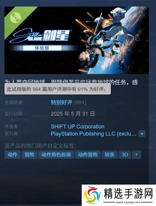 动作游戏《剑星》近期在PC平台上放出了试玩Demo,迅速吸引了大量玩家的关注。在Steam平台上,这款游戏的试玩版本已经积累了超过900篇用户评测,好评率高达91%,反响极为热烈。