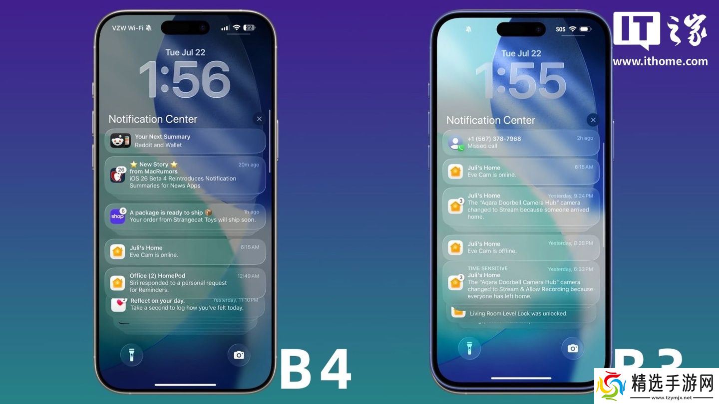 其他方面,苹果在该版本中调整了锁屏通知呈现效果,当用户滚动浏览 App 通知时,锁屏背景将变暗。同时苹果还改进了 iOS 26 中的通知摘要,解决了可能导致新闻标题混淆的问题。