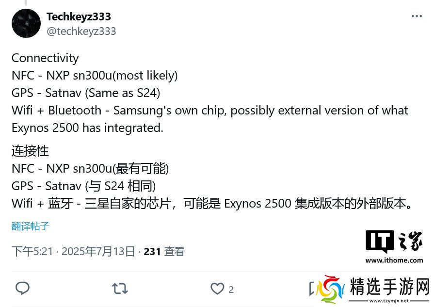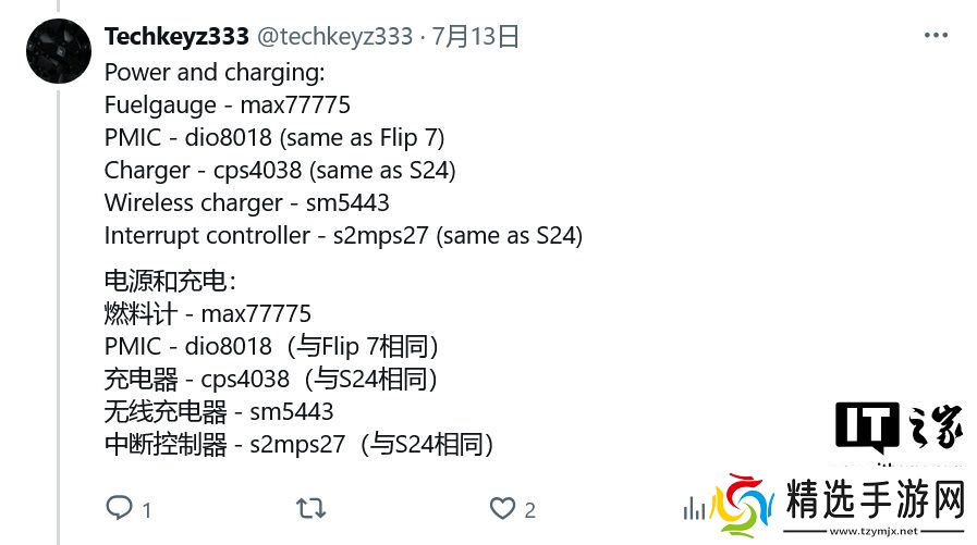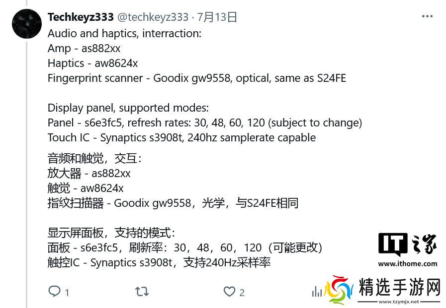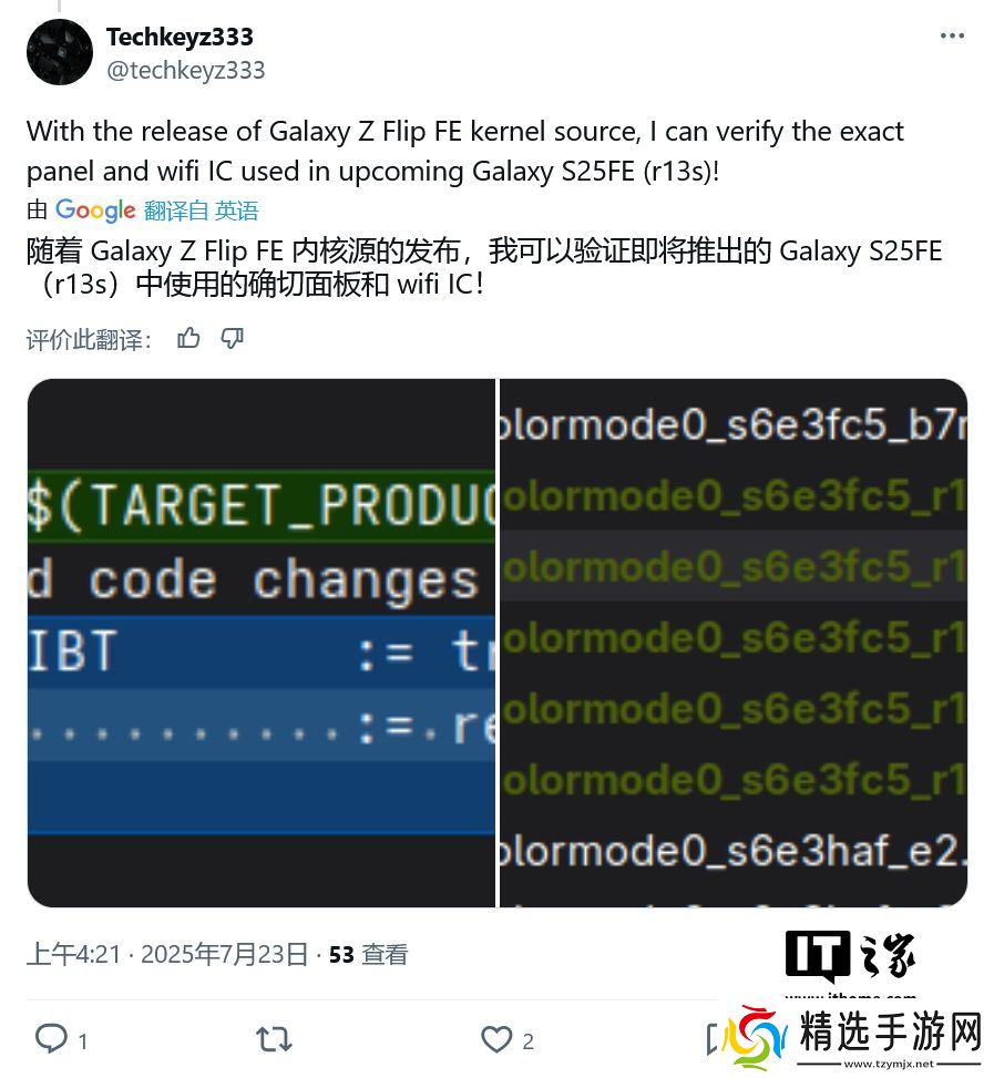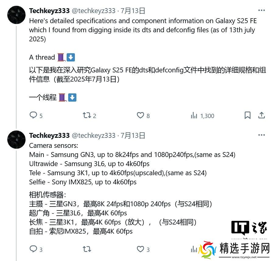 本站 7 月 23 日消息,消息源 @techkeyz333 本月在 X 平台发布系列推文,通过挖掘三星 Galaxy Z 折叠手机固件,发现了三星 Galaxy S25 FE 智能手机的关键规格信息。