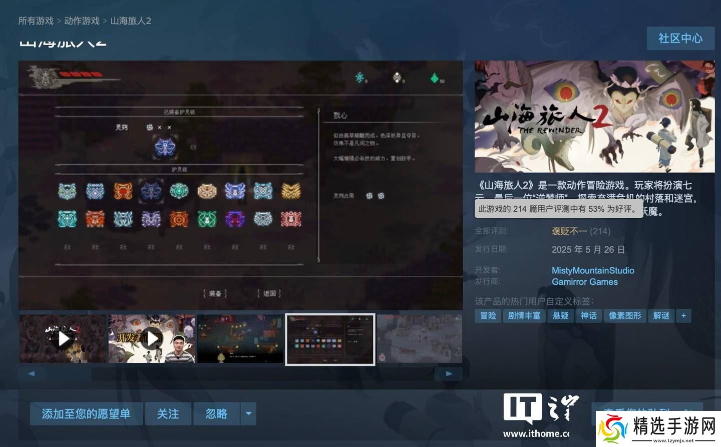 据新宇透露,由于在游戏开发过程中反复试错,大量资源被浪费,最终呈现给玩家的版本与早期测试版相比,存在巨大差异。这不仅影响了游戏的整体质量,也导致了玩家口碑的两极分化。目前,《山海旅人 2》在Steam上的玩家好评率仅为53%,远低于前作的96%“好评如潮”。