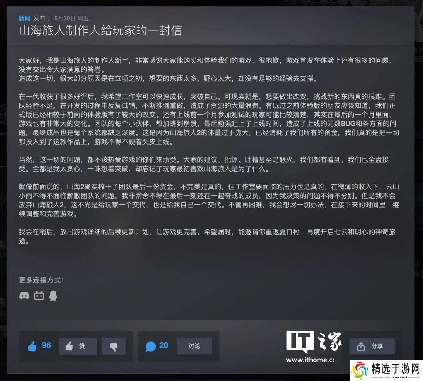 近期,国产独立游戏领域发生了一起引人注目的风波。游戏制作人新宇,在知名游戏平台Steam上发布了一封致《山海旅人》系列玩家的长信,信中详细披露了续作《山海旅人 2》开发过程中的曲折经历。