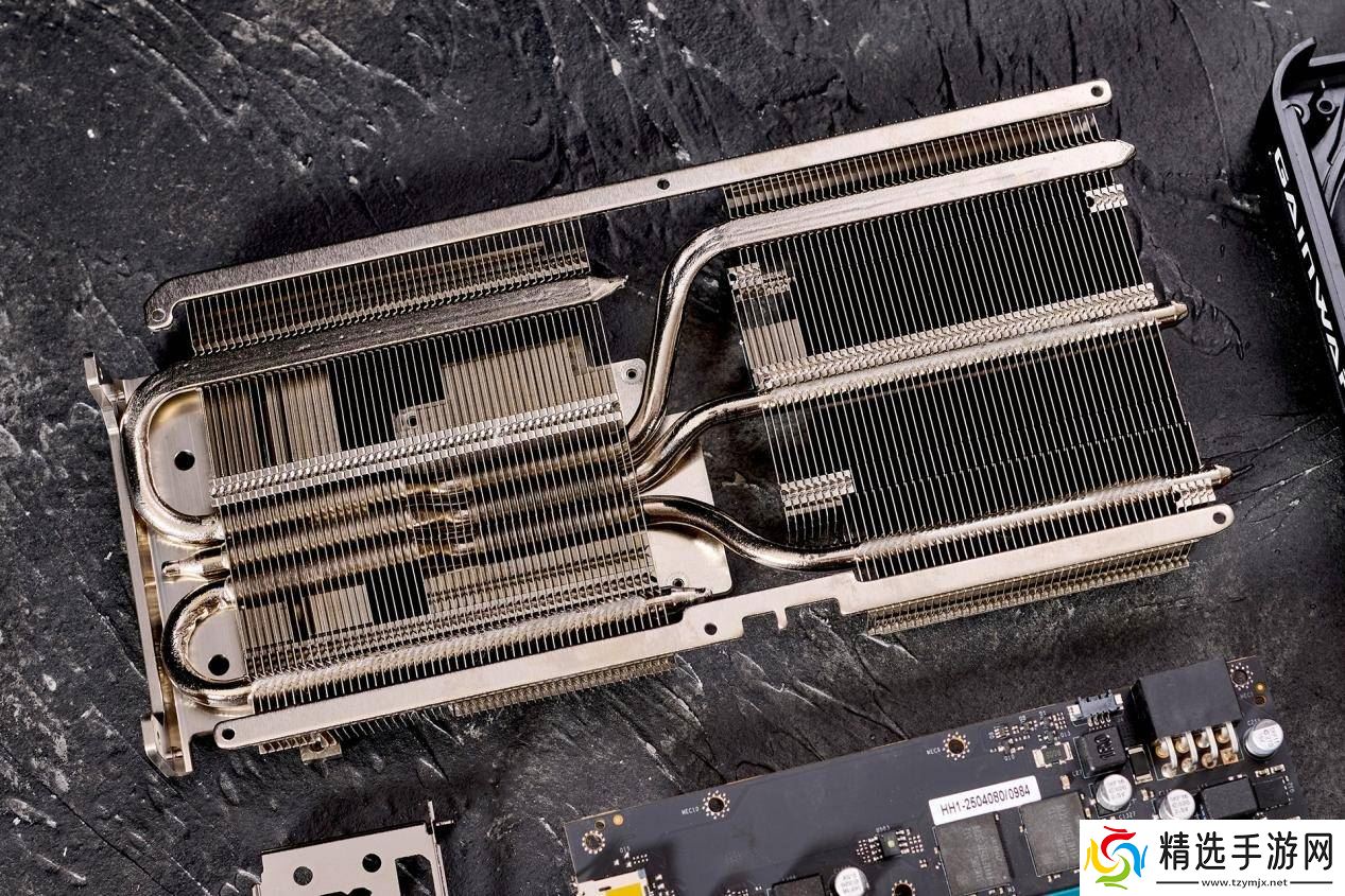 拆解后可以看到,耕升RTX 5060暴风OC采用了自家研发的非公版PCB设计,对电路布局进行了优化。显卡采用双风扇散热系统,配备两个102毫米风扇,通过优化的叶片设计提供强劲气流,同时保持低噪音。散热模块包括直接接触GPU芯片的铜底板和三根6毫米镀镍热管,确保热量快速传递至散热片。
